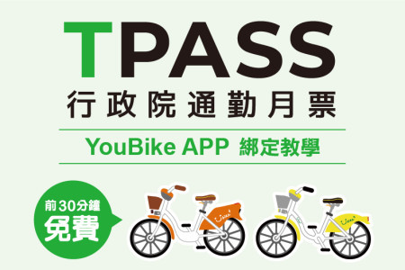 TPASS行政院通勤月票,享有YouBike 2.0/2.0E前30分鐘免費