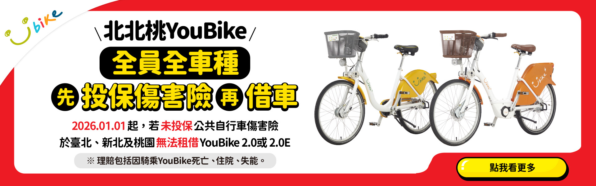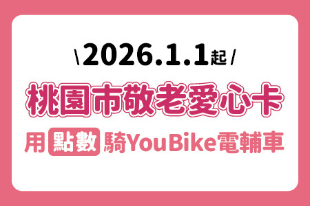 2026/01/01起,【桃園市敬老愛心卡】可扣點數騎YouBike 2.0E電輔車